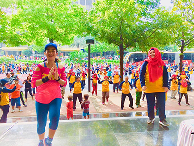 Kegiatan senam bersama dalam mengurangi faktor resiko penyakit tidak menular di antaranya menurunkan berat badan,